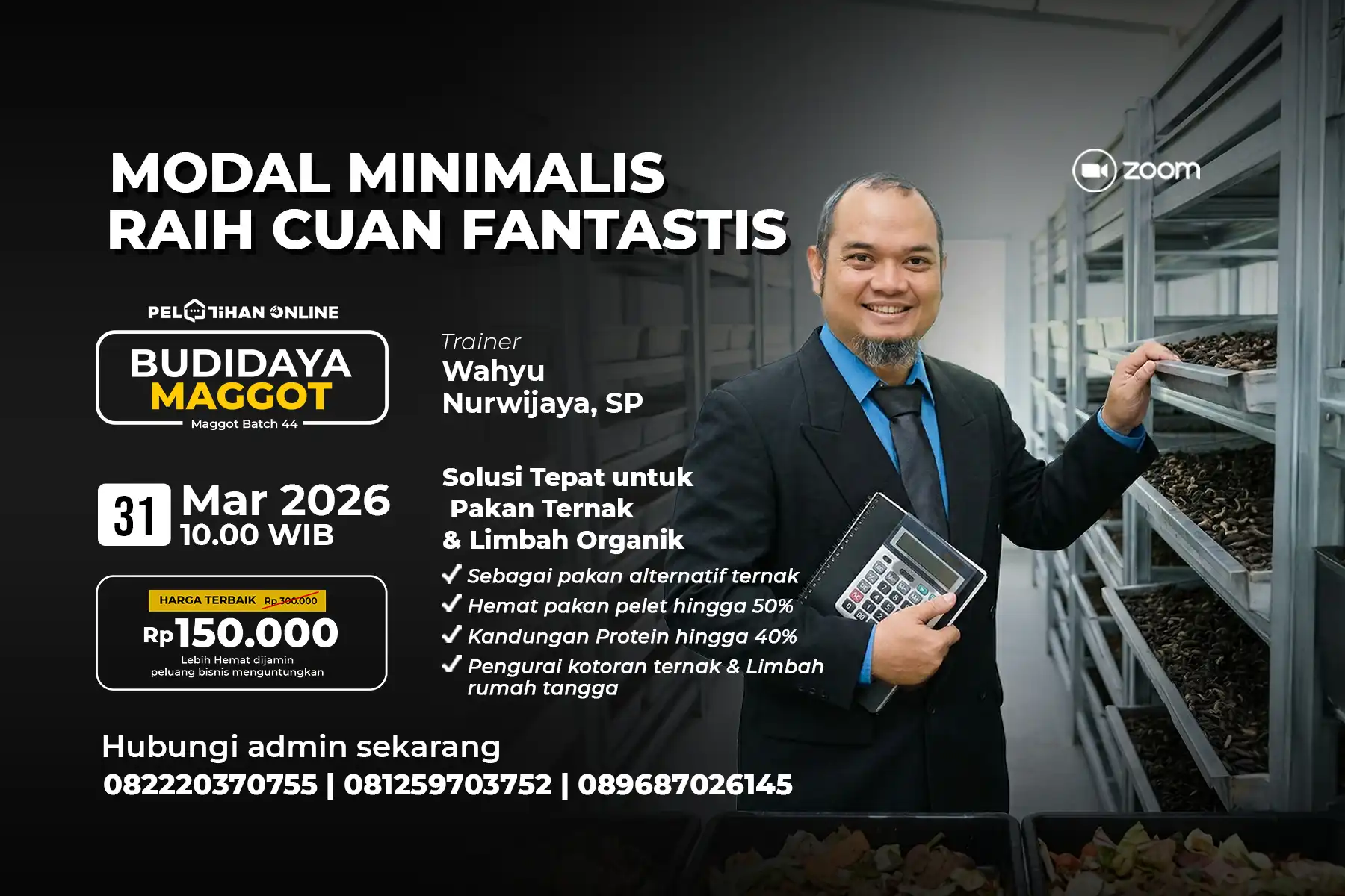 Dapatkan ilmu praktis dan aplikatif yang dapat langsung diterapkan di peternakan Anda. Daftar sekarang dan mulailah budidaya maggot untuk masa depan ternak yang lebih hemat dan ramah lingkungan!
