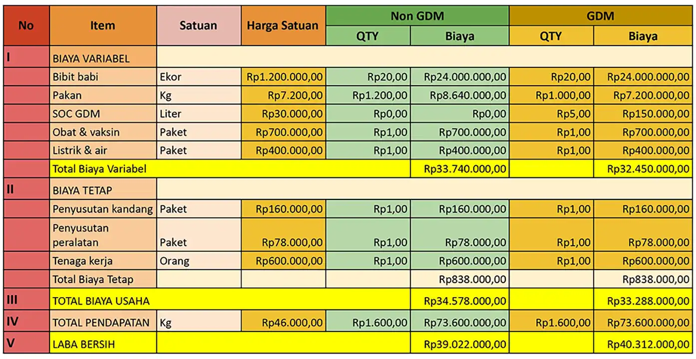 Lalu, bagaimana sih hasil perhitungan analisa usaha babi yang dibudidayakan Bapak Ketut? Yuk simak penjelasan berikut ini: